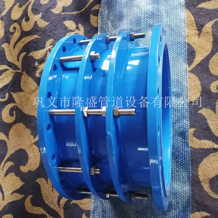 雙法蘭伸縮接頭是由本體、密封圈、壓蓋、伸縮短管等主要部件組成。在松套伸縮接頭原有性能的基礎(chǔ)上增設(shè)限位裝置,在伸縮量處用雙螺母鎖定。管道在允許的伸縮量中可以自由伸縮,一旦超過(guò)其伸縮量就起到限位,確保管道的安全運(yùn)行,特別適用于有振動(dòng)或有一定斜度及拐彎的管路中的連接。